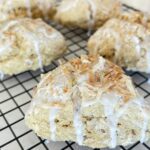 Mix the powdered sugar and lime juice and drizzle over or brush onto the scones. Top with toasted coconut and/or lime zest. Enjoy.