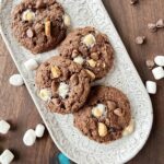 Chocolate cookies with graham cracker crumbs, milk chocolate chips and mini marshmallows. They'll take you to a summer bonfire with each bite.