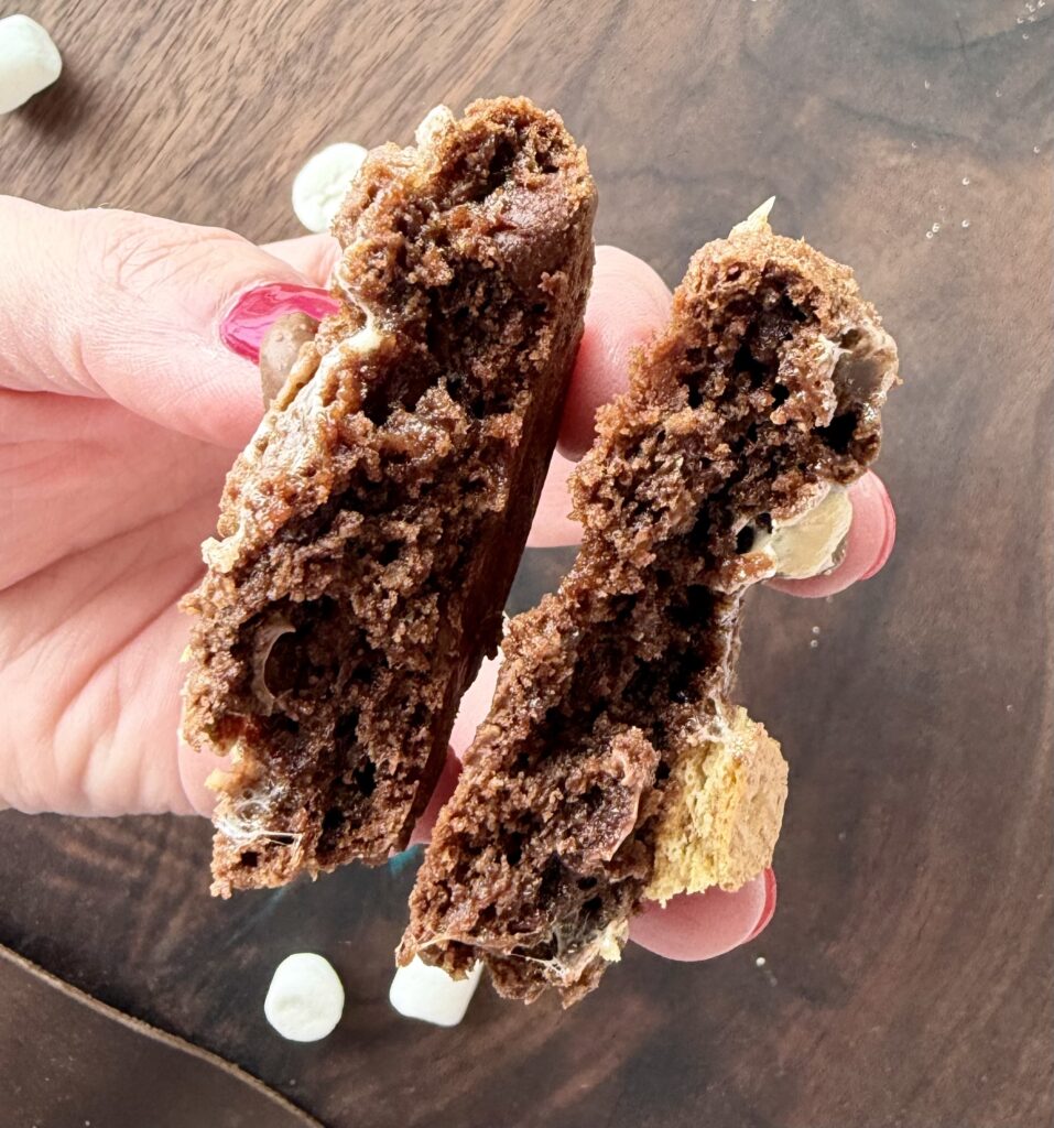 The marshmallows melt into the dough and you can’t see them, which is why I like to add a few on top.