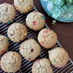These peanut butter chocolate chip muffins with fresh milled flour are extremely moist and delicious. They have just the right satisfying balance of peanut butter and chocolate. I started making these for my son that wanted something homemade in the morning. I’d much rather give him a homemade muffin with fresh milled flour than a lot of other things (I’m talking about you store-bought donuts). We’re going to pretend like there isn’t candy in these muffins.