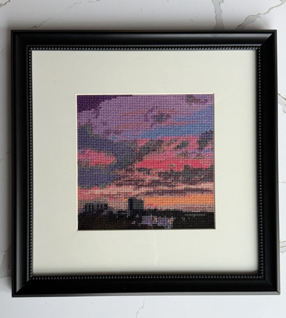 Cross stitch is my go to activity while I’m watching TV and/or having a lazy afternoon. I’ve been able to create a few of my own patterns (below). We have a local frame shop that does a lovely job. I’d like to learn how to do the framing myself just for fun = 2026 goals.
